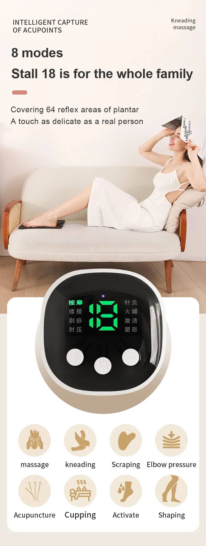 8 Modes & 19 Intensity Levels: Customizable massage experiences (kneading, scraping, acupressure, etc.) to suit every client’s preference.