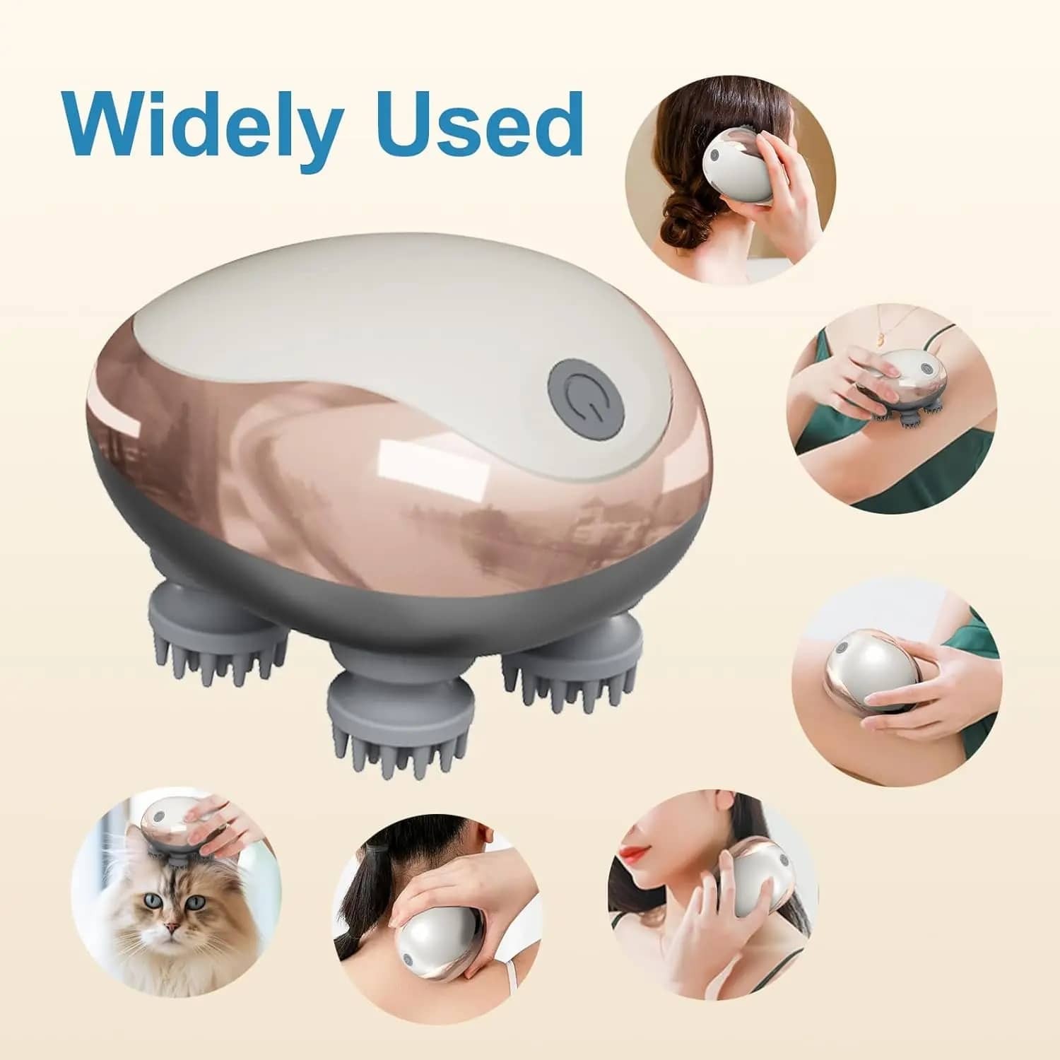 Simulated Human Touch: Four massage heads with 360° rotational kneading for deep tissue relaxation.Dry & Wet Double Use: Fully IPX7 waterproof, allowing for deep scalp cleansing during showers or quick stress relief at the office desk.