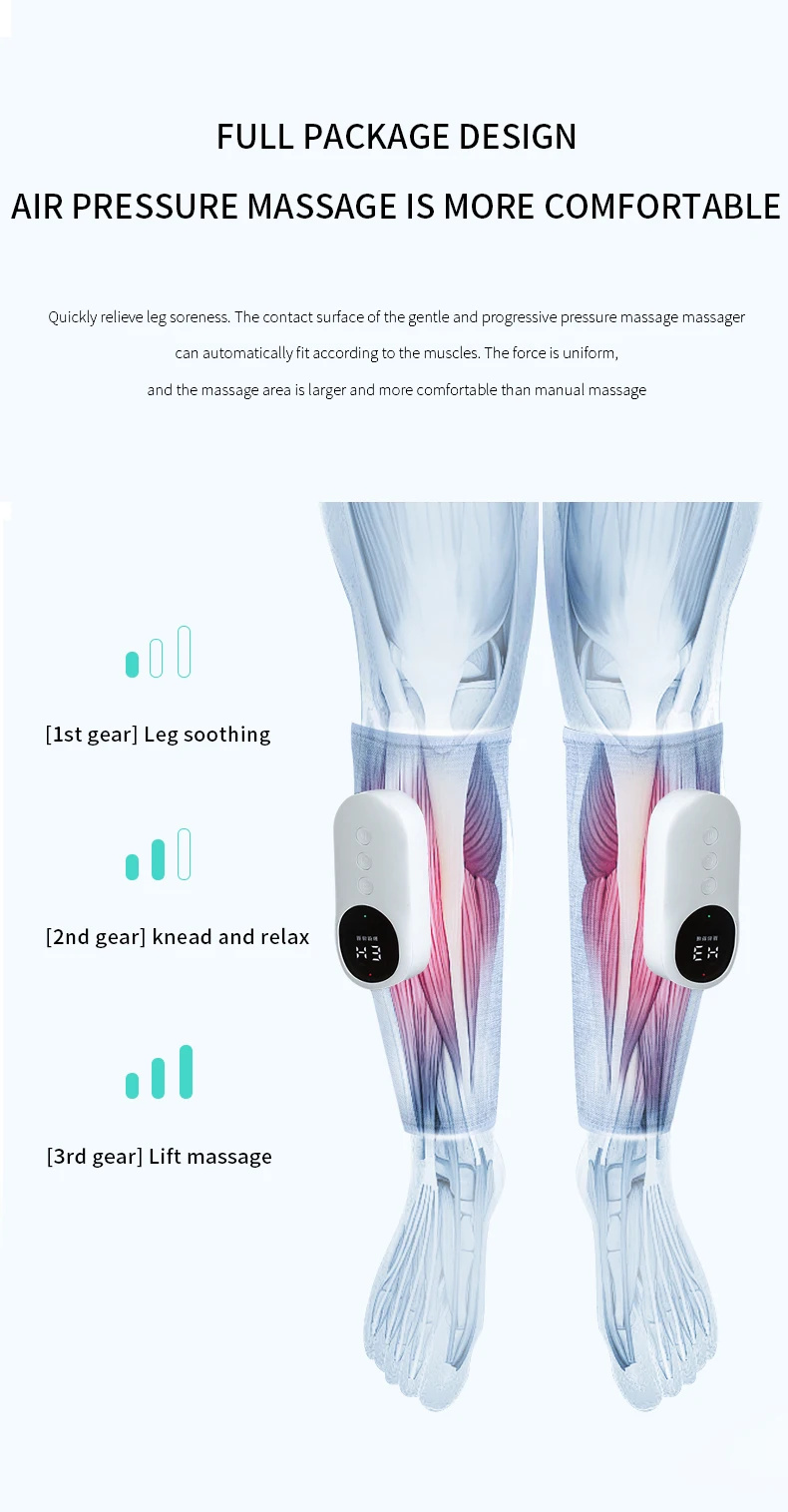 One of the main benefits of air pressure massage is to increase blood circulation. Better blood flow means more efficient delivery of oxygen and nutrients throughout the body, thereby enhancing the many health benefits of massage air compression leg massager. When blood circulation improves, blood pressure naturally decreases, which also reduces the pressure on the heart. This means that pressure massage may help reduce the risk of heart attack or stroke.