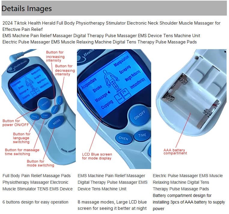 Advanced TENS + EMS Technology: Features dual pulse stimulation to both block pain signals (TENS) and strengthen/rehabilitate muscles (EMS).
