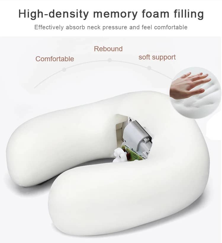 M-Shaped Ergonomic Support: The high-density slow-rebound memory foam provides 360° surround support, maintaining correct cervical posture even when the massage function is off.